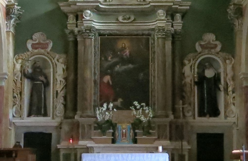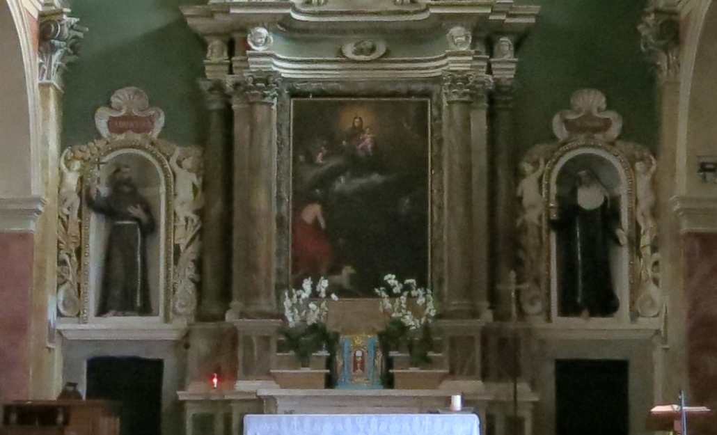 La pala dell’altare maggiore è un olio su tela di 233 x 158 cm, opera di pittore ignoto di ambito laziale del XVII-XVIII secolo.