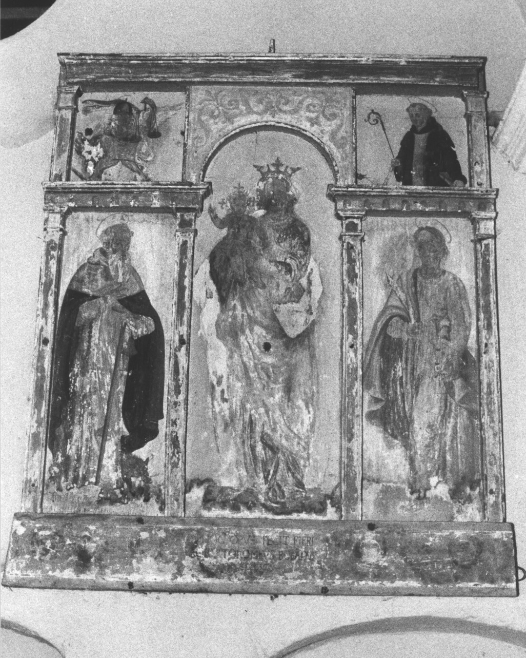 Nel polittico sono raffigurati (in basso a destra) San Bartolomeo; (in alto a sinistra) San Michele Arcangelo; (in alto a destra) San Bernardo.