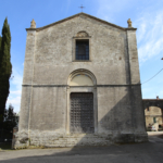 La chiesa sorge ove vi era un edificio sacro dedicato a san Lorenzo, presso il quale si stabilì, probabilmente nel primo quarto del XIII secolo, una comunità di frati minori. L’attuale chiesa fu la prima costruzione del complesso conventuale ad essere iniziata, nel 1270 circa, per venire terminata perlomeno nell’area absidale presumibilmente nell’anno 1300.