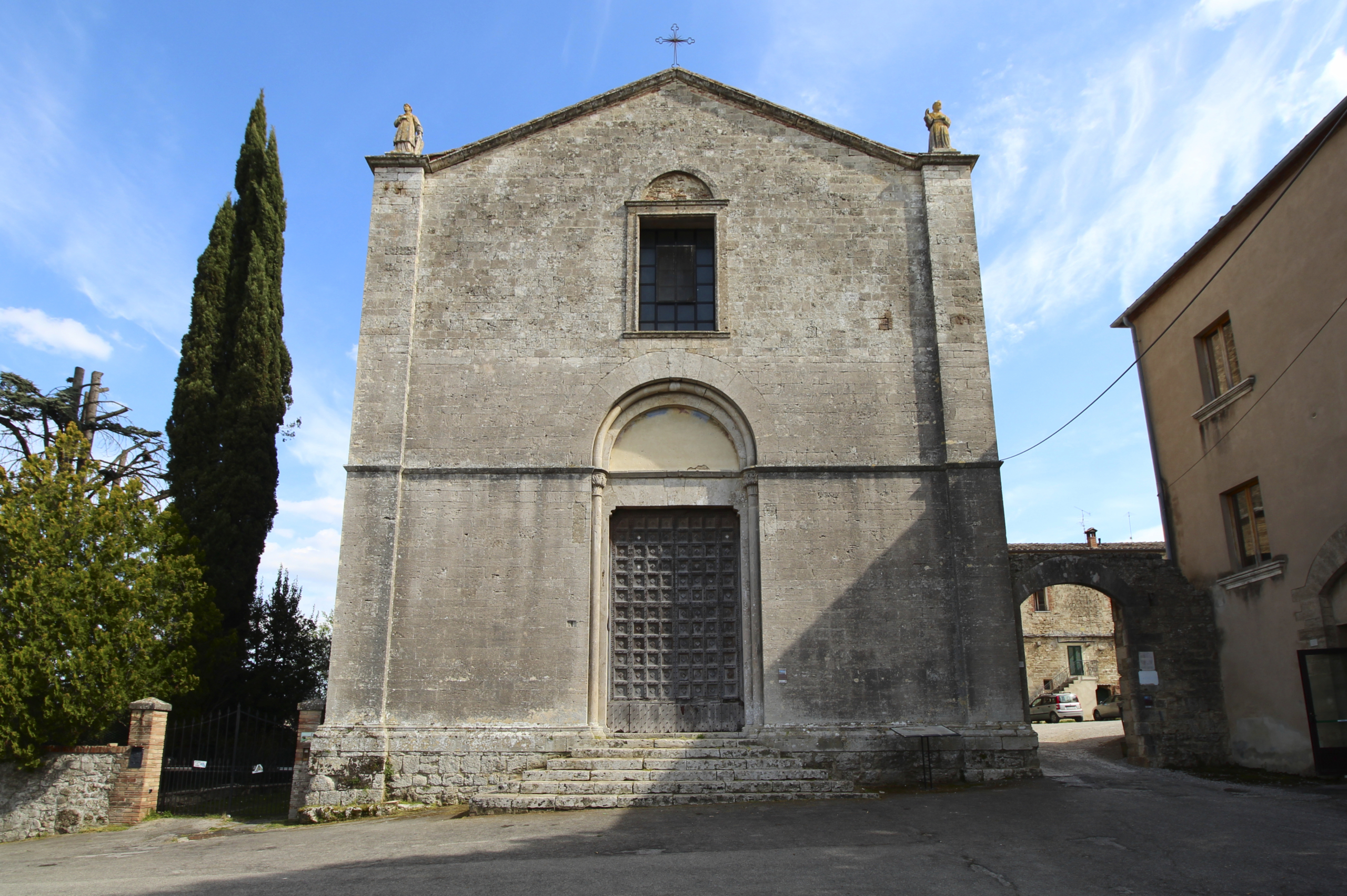 Negli sguanci della nicchia sono raffigurate le grandi figure della patrona di Asciano sant’Agata a sinistra e di san Cristoforo a destra.