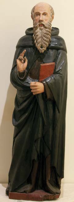 Nel Museo di Palazzo Corboli ad Asciano è conservata una statua lignea del Santo attribuita ad uno scultore senese della fine del XIV secolo e che, dopo la tamponatura della nicchia fu posta sul terzo altare di sinistra. L’opera rappresenta sant’Antonio in piedi, con un mantello nero sotto cui si intravede un saio marrone, con la mano destra alzata in segno di benedizione e un libro trattenuto col braccio sinistro e la mano stretta a pugno doveva reggere un bastone, perduto.