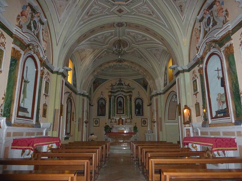 L’altare nell’aula principale è sormontato da una cupola su pennacchi, al cui interno vi sono affreschi dei quattro Evangelisti, opera di Ettore Bravo di Atessa, realizzati intorno alla metà del Novecento. Nello stesso ambiente, all’interno del muro destro, è incastonato un confessionale in finto marmo.