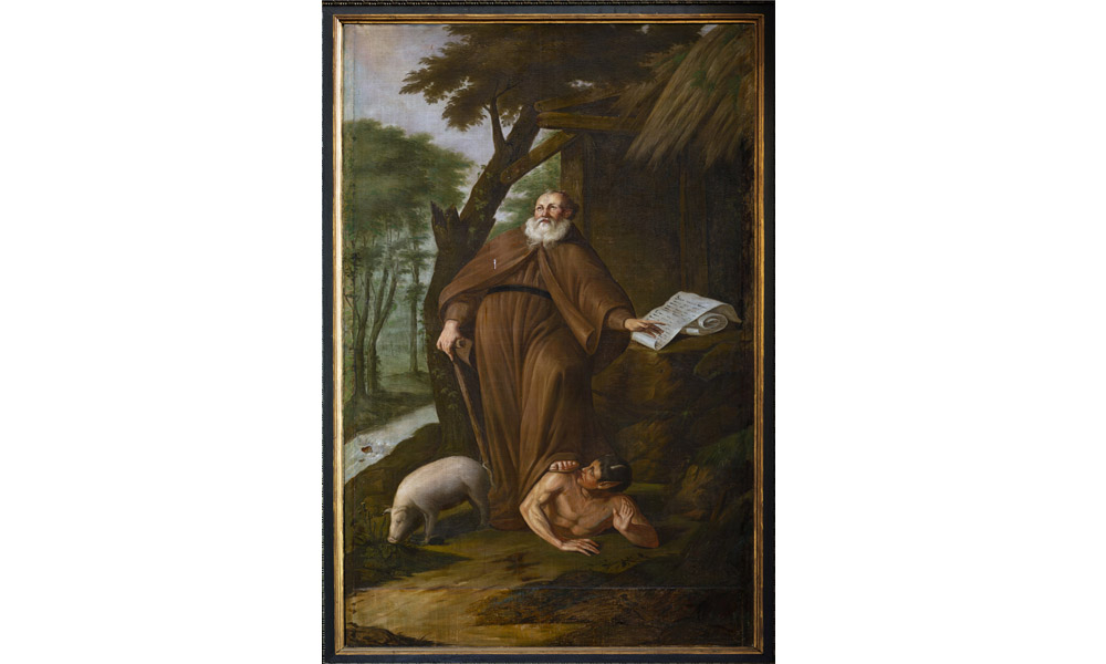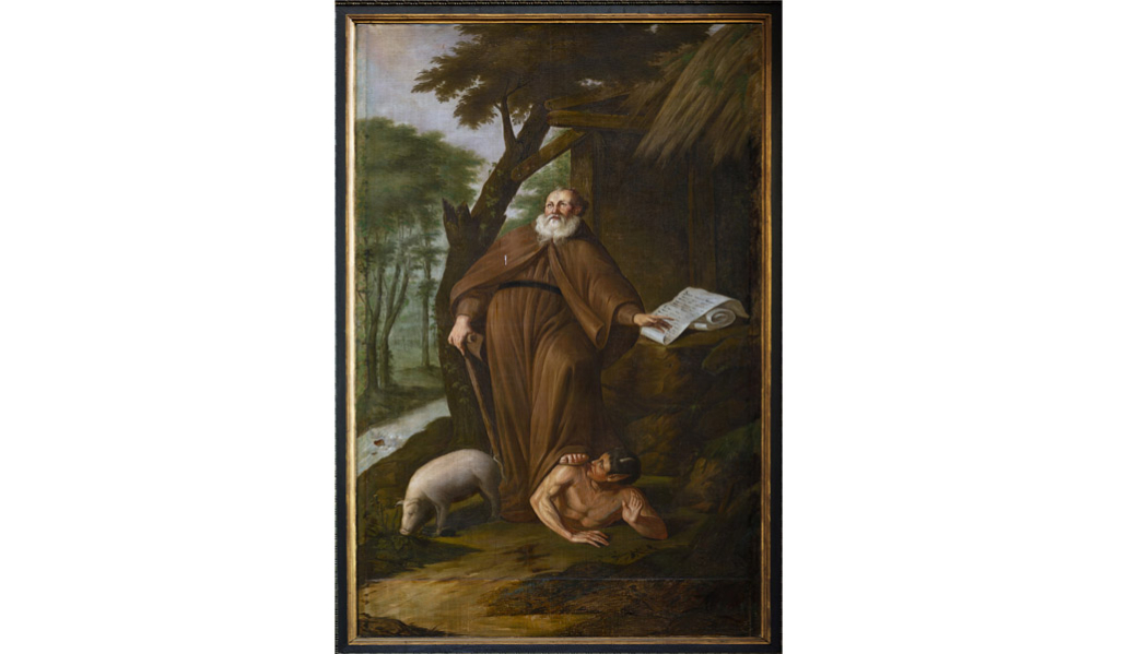 La statua in legno policromo sull’altare rappresenta sant’Antonio abate ed è alta 108 cm.