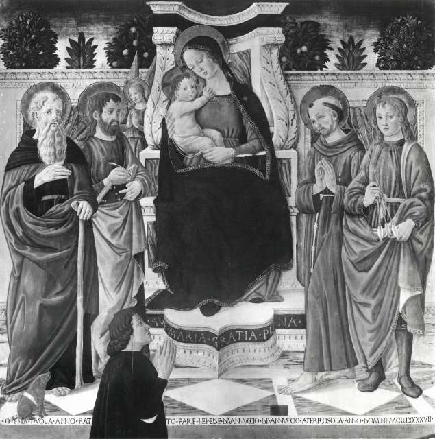 Datata 1497, come da iscrizione alla base, opera del fiorentino Bernardo di Stefano Rosselli (1450 – 1526, cugino del più noto Cosimo Rosselli), artista della scuola di Pietro Vannucci detto il Perugino. In precedenza attribuita a Domenico di Zanobi.