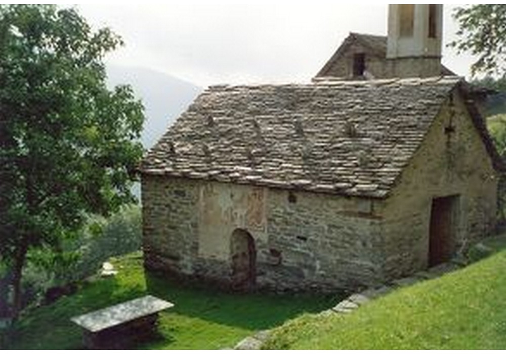 La chiesa, costruita con pietre a vista e coperta di lose, ha una sola navata. Parte della parete destra venne abbattuta per costruire una cappella dedicata a S. Grato, che contiene una pala d’altare con Madonna e Santi.