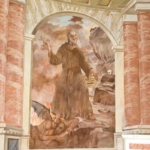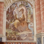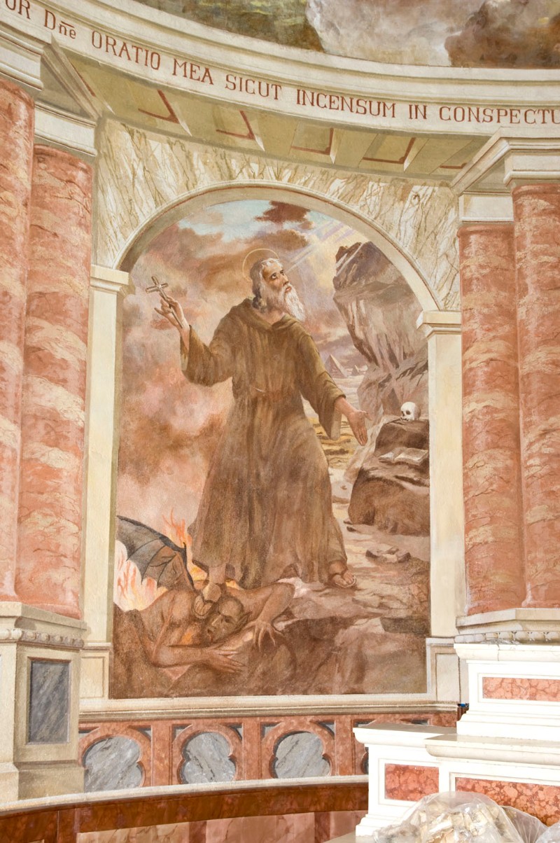 Teodoro Fengler de Vogg nel 1945 ha affrescato il Martirio di San Lorenzo sulla destra della navata e nel catino absidale ha dipinto il Sacro Cuore in gloria e Angeli e nel cilindro absidale: Sant’Antonio che calpesta il diavolo e Sant’Antonio che riceve il pane dal corvo, due riquadri che misurano 323 x 183 cm.