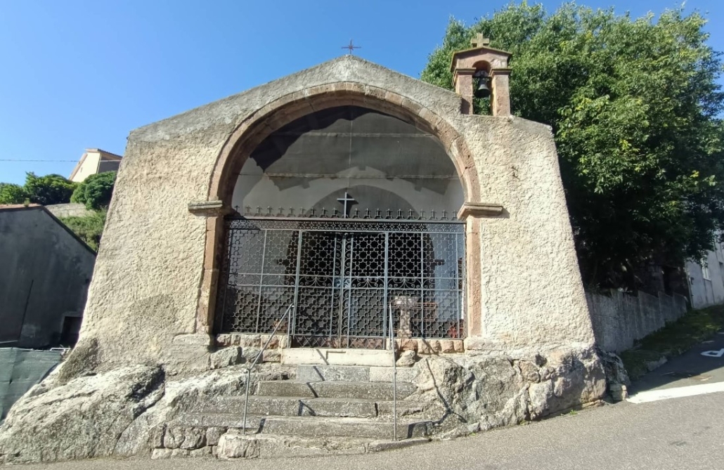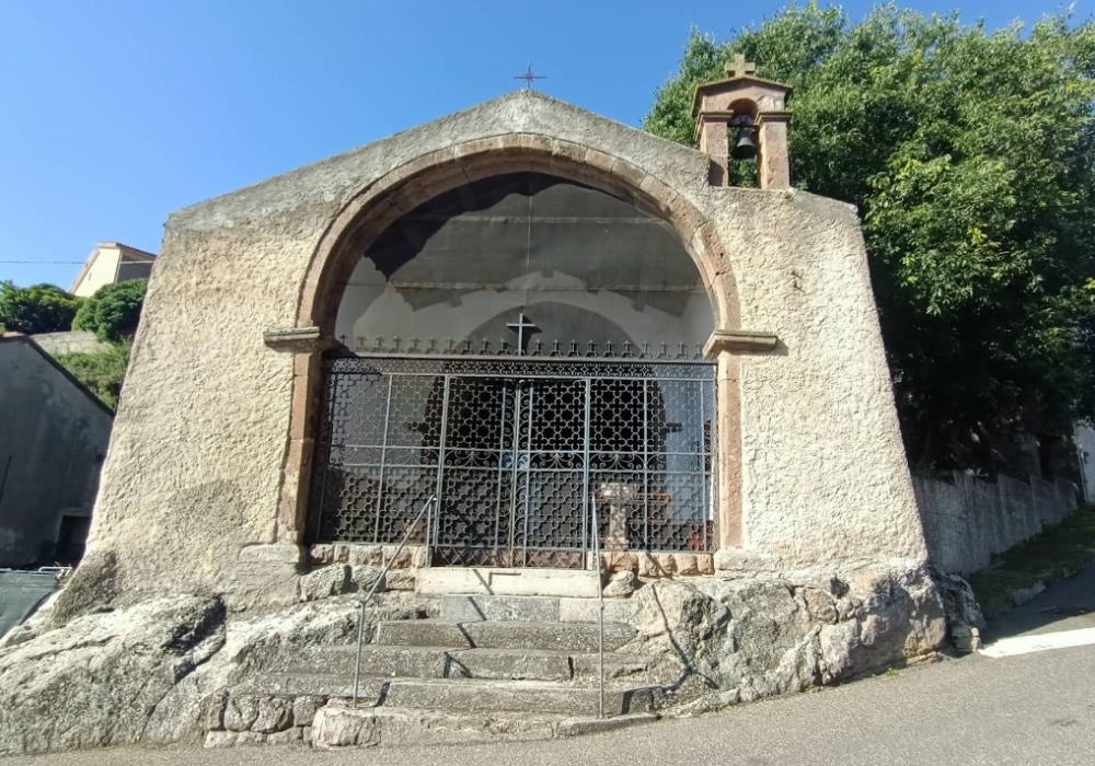 La chiesetta, edificata nel XVIII secolo, ha la particolare e suggestiva caratteristica di essere scavata quasi interamente nella roccia. Di forma quadrata, i capitelli dei pilastri centrali sono ornati dai classici dentelli rinascimentali. Tetto a due falde con un piccolo campanile a vela a destra.