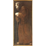 Sant’Antonio, barba bianca e saio scuro, appoggiato al bastone, si trova alla sinistra.