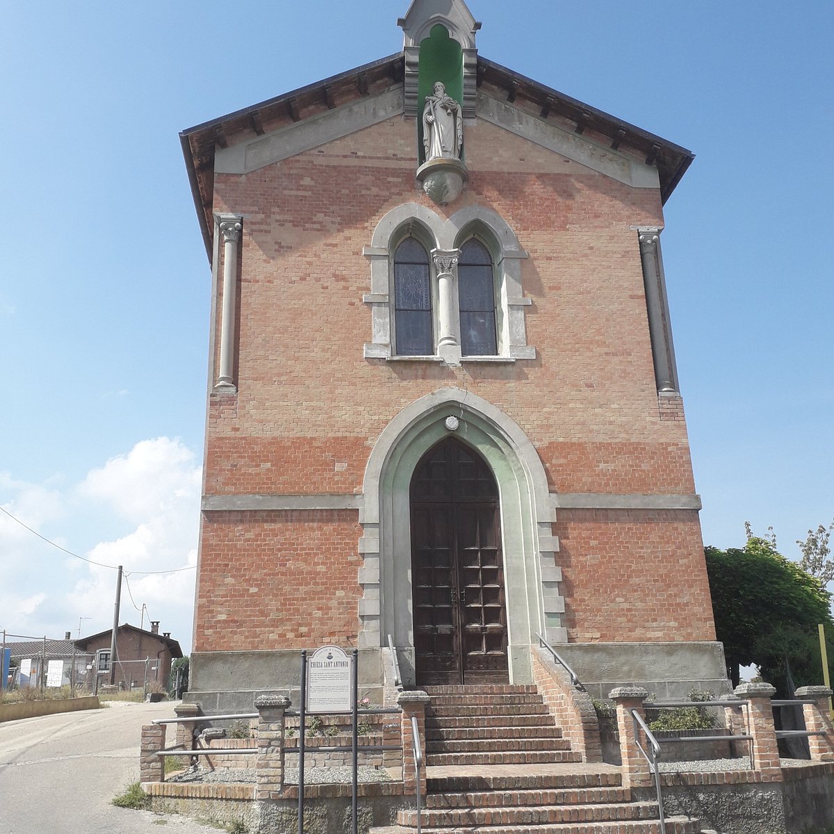 Isolata su un poggio, presenta una statua di sant’Antonio abate nel timpano.