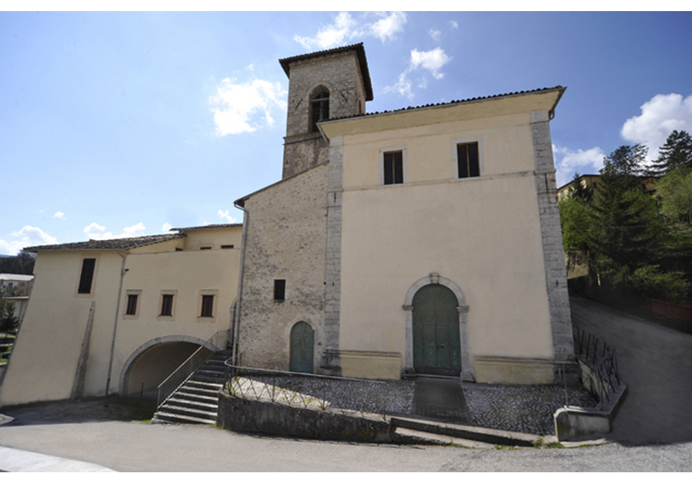 In un andito tra la chiesa e l’ex monastero si conservano affreschi che raffigurano una Madonna col Bambino; san Michele arcangelo e sant’Antonio abate, opera di Paolo da Visso, pittore marchigiano del XV secolo.
