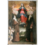 Al centro la Vergine col Bambino, a sinistra in alto sant’Antonio abate, in basso san Pietro; a destra i santi Lorenzo (?) e Bartolomeo.