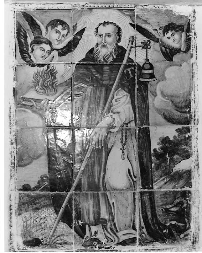 Olio su tela di 80 x 70 cm, raffigurante sant’Antonio abate a mezzo busto, di autore ignoto di ambito toscano, databile alla prima metà del XVIII secolo.