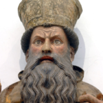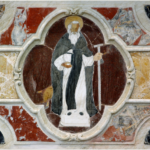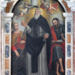 l’effigie di Sant’Antonio Abate, in abiti monastici, con il saio e il bastone a T dell’eremita.