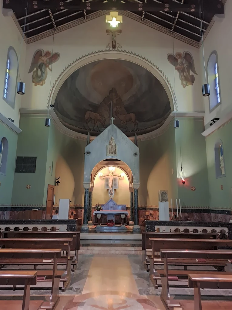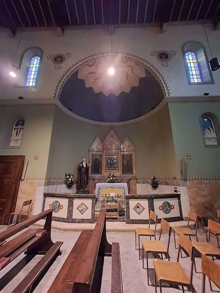 All’interno, in una delle cappelle laterali a destra, dipinti e una statua moderna di s. Antonio abate.