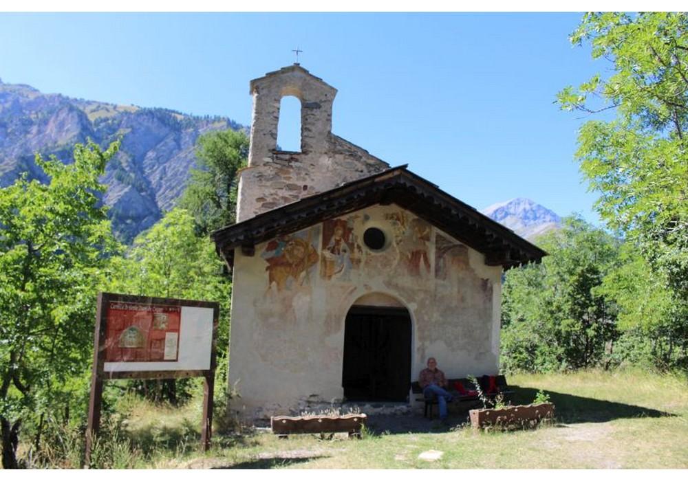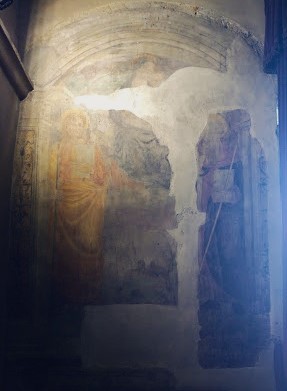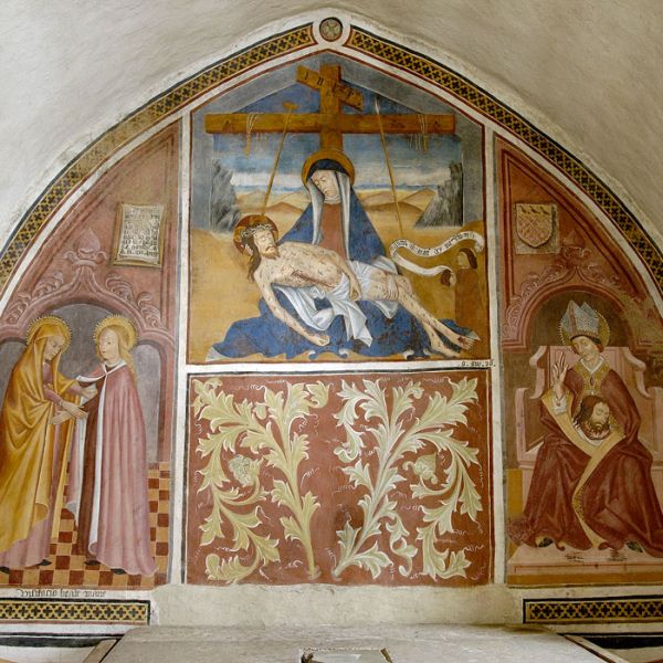 Sopra l’arco un affresco scoperto durante i lavori di rifacimento del tetto raffigurante l’Annunciazione: da un lato la Vergine che legge le Scritture, dalla parte opposta l’Arcangelo Gabriele e nel mezzo una nube sulla quale doveva probabilmente trovarsi un’altra figura, ma la parte superiore dell’affresco è andata definitivamente perduta.