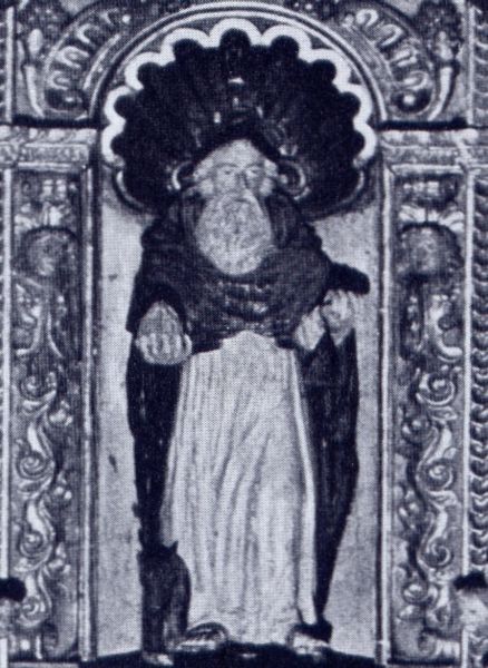 Al XVIII sec., invece, il sovrastante affresco raffigurante Sant’Antonio abate in abito monastico, con il mano il bastone a Tau ed un cartiglio con l’iscrizione: Abstinencia et paciencia vicit demones.