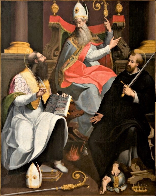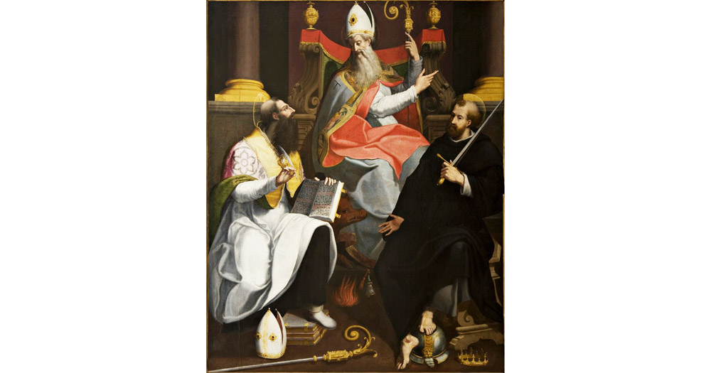 Prima dell’arrivo dell’opera in Pinacoteca non esistono notizie riguardanti la collocazione e paternità dell’opera. Al suo arrivo in Pinacoteca fu catalogato come di “manierista bolognese tibaldesco prossimo al Sabatini”, quest’ultimo, infatti, aveva affrescato in maniera assai simile, Girolamo e Gregorio Magno, in San Giacomo Maggiore a Bologna.
