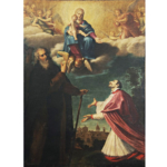 Olio su tela di 110 x 150 cm, raffigurante “Sant’Antonio abate sul trono fra Sant’Agostino e San Guglielmo d’Acquitania”