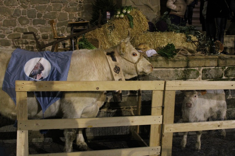 Per l’occasione, sul sagrato della chiesa viene allestito un banco con una serie di prodotti tipici del territorio, viene acceso un modesto falò in corrispondenza della torre campanaria e dalle campagne vengono condotti in paese diverse specie animali; ad alcuni di questi animali viene riservata un’apposita postazione, altri invece, soprattutto cani ed equini sfilano davanti la chiesa condotti dai loro proprietari per ricevere la benedizione.