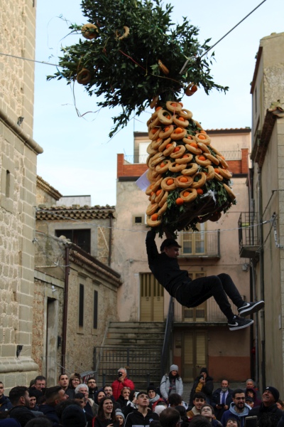 Nel pomeriggio del 17 gennaio, con il caratteristico rullo di tamburi, ‘u “Circu” viene prelevato dalla chiesa e viene issato con delle funi al centro della piazza; collocato sul posto, alcuni esponenti della Confraternita dal campanile della chiesa e dai balconi delle abitazioni che sia affacciano sulla piazza lanciano alla folla presente dei fazzoletti contenenti delle caramelle.