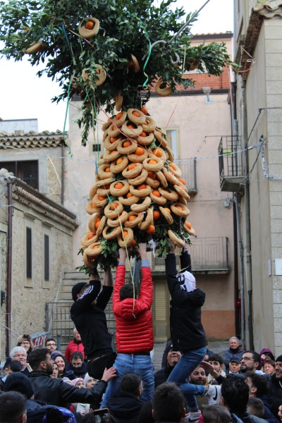 ‘U “Circu” è una struttura costruita su una base circolare (da qui il nome Circu) realizzata interamente in alloro tra i cui folti rami viene legato del pane a forma circolare (cuddura) con al centro un’arancia.