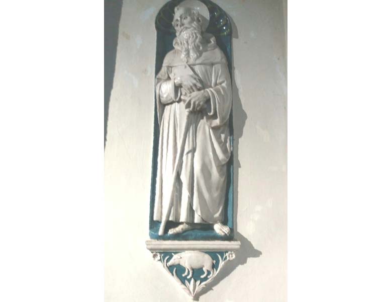 In basso il classico maialino sempre presente nell’iconografia del Santo perché protettore degli animali del mondo contadino.