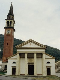 Attestata fin dal Medioevo come dotata di beneficio, cimitero e hospitale (1243), la chiesa dei Santi Simone e Giuda Taddeo apostoli è filiale della pieve matrice di Cison, da cui si staccò ricevendo prima l’autorizzazione a erigere il fonte battesimale (1423) e successivamente il titolo di curazia (1484) e poi di parrocchia (1693).
