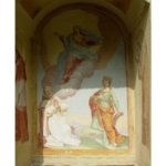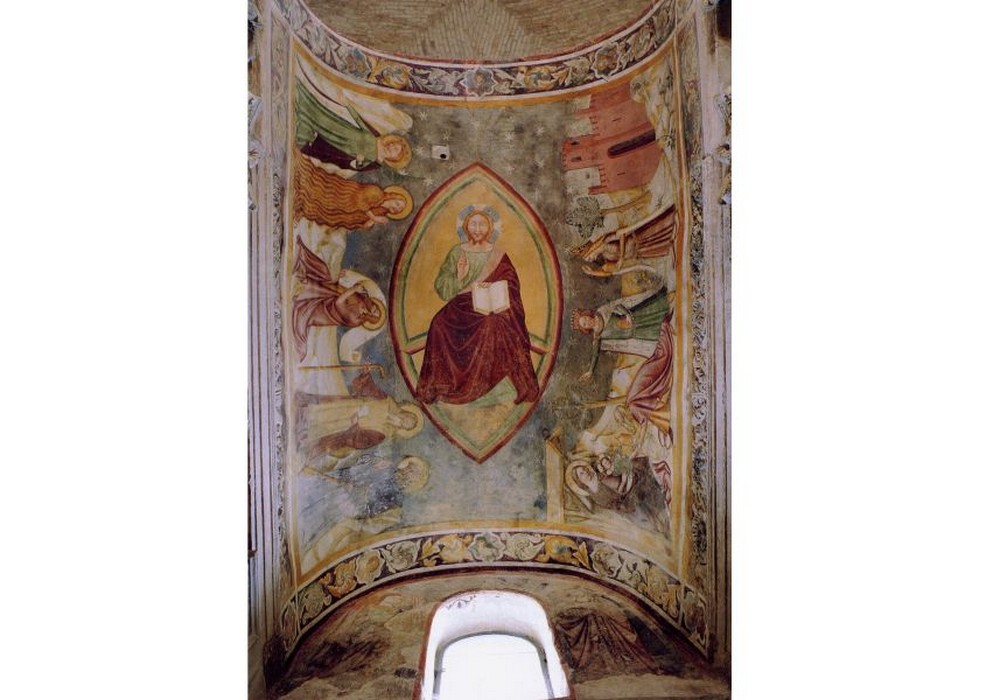 FB_IMG_1523876285065Nell’abside centrale, nella volta, vi è raffigurato un Cristo in mandorla, un’Adorazione dei Magi e Santi (Elisabetta d’Alessandria, Maria Maddalena, Giovanni Battista, Antonio Abate e Benedetto.