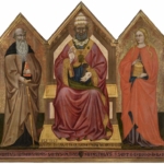 L’ avvincente ricostruzione proposta in questa sede da Annamaria Bernacchioni relativa alla possibile, anzi probabile, provenienza originale dell’opera dall’antica chiesa di San Pietro Apostolo di Avenza (Carrara), con il contiguo Ospedale di Sant’Antonio abate – giusto i santi raffigurati nella pala -, lungo il tracciato della via Francigena, unita alla plausibile caratterizzazione del committente, sembrerebbe gettare invece nuova luce sugli ambienti che si rivolgevano all’artista, che dovettero avere in più di un’occasione un rilievo maggiormente pubblico-istituzionale, come si può affermare certamente per la tavola eponima conservata alla Galleria dell’Accademia di Firenze. Questa fu eseguita molto probabilmente per la Magistratura dei Pupilli istituita nel 1393, che si occupava di tutelare gli orfani minorenni e le vedove, che aveva eletto per l’appunto come suo patrono proprio Sant’Ivo di Bretagna, avvocato dei deboli e di coloro che non avevano mezzi per essere tutelati.