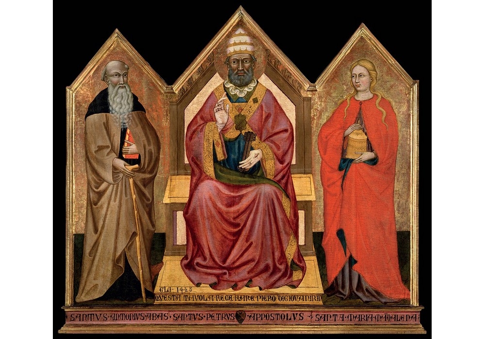MASSA CARRARA, frazione Avenza. Chiesa parrocchiale di San Pietro. “ San Pietro in Trono tra Sant’Antonio abate e Maria Maddalena” del Maestro di Sant’Ivo, 1438