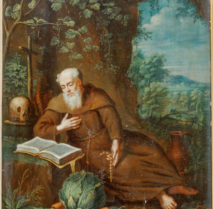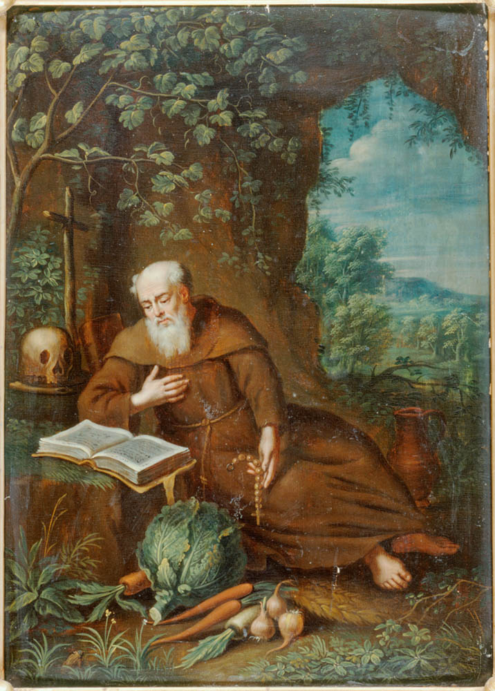 Olio su tavola di 43 x 30 cm. “Un eremita penitente nel deserto”, è il titolo con cui è stato messo all’asta, ma è probabile sia sant’Antonio abate (non s. Francesco d’Assisi come indicava un sottotitolo).