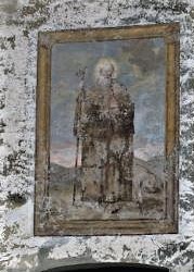Conserva tracce di graffiti decorativi sul fianco destro e un affresco sulla facciata che raffigura sant’Antonio abate con bastone, campanella e maiale, attribuito a Giovanni De Giorgi ? (1684-1717).