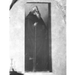 Sant’Antonio abate, al centro in abito monastico, tiene in mano un bastone
