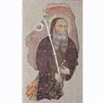 Il dipinto raffigura sant’Antonio abate, semidisteso e circondato da diavoli e diavolesse, mentre si rivolge al Redentore che gli appare tra le nubi.