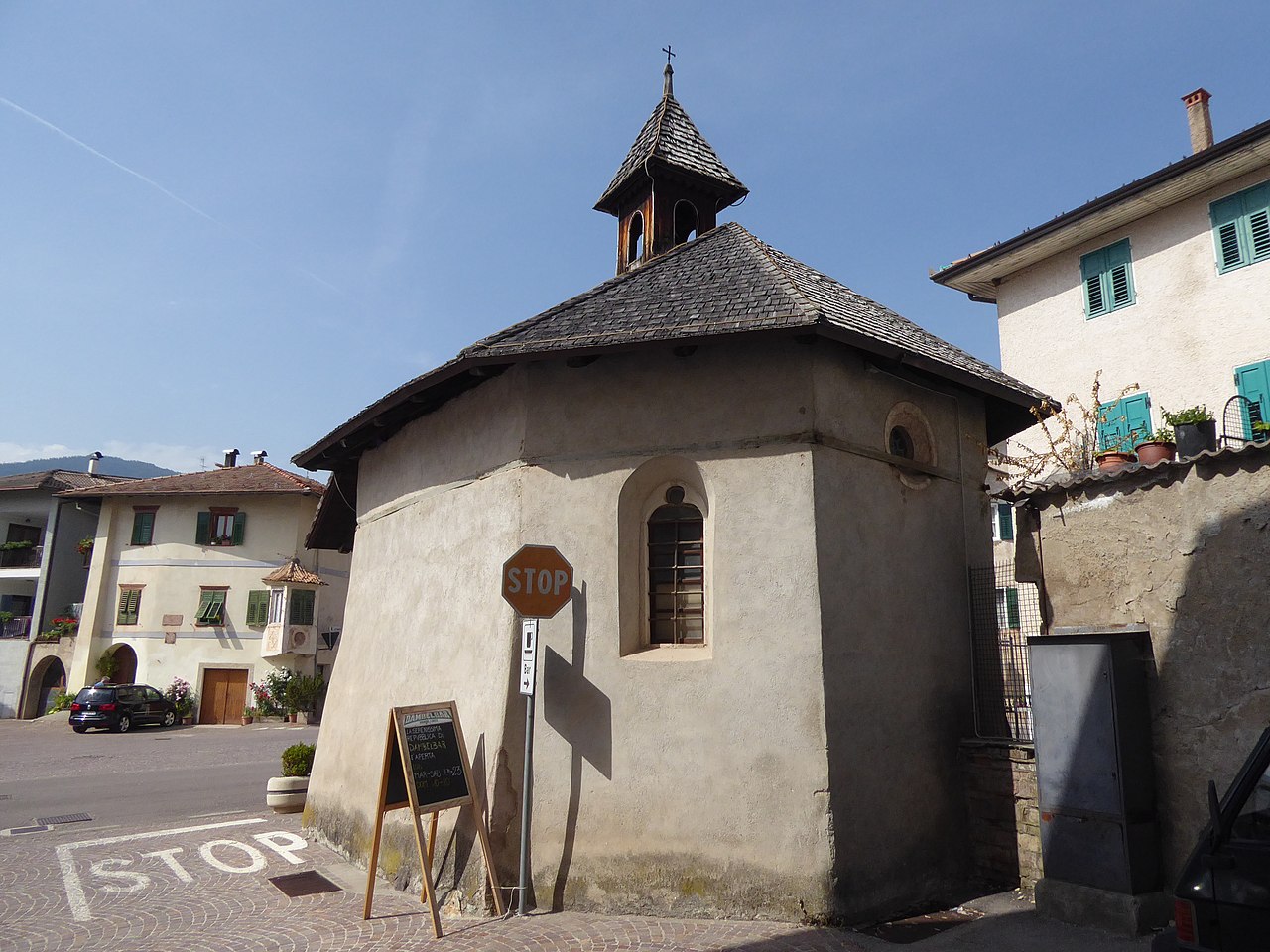 Dagli esterni molto semplici, all’interno ospita una tela di Diodato Massimo (Badia Polesine, 1846 – Bolzano, 1924).