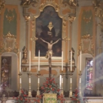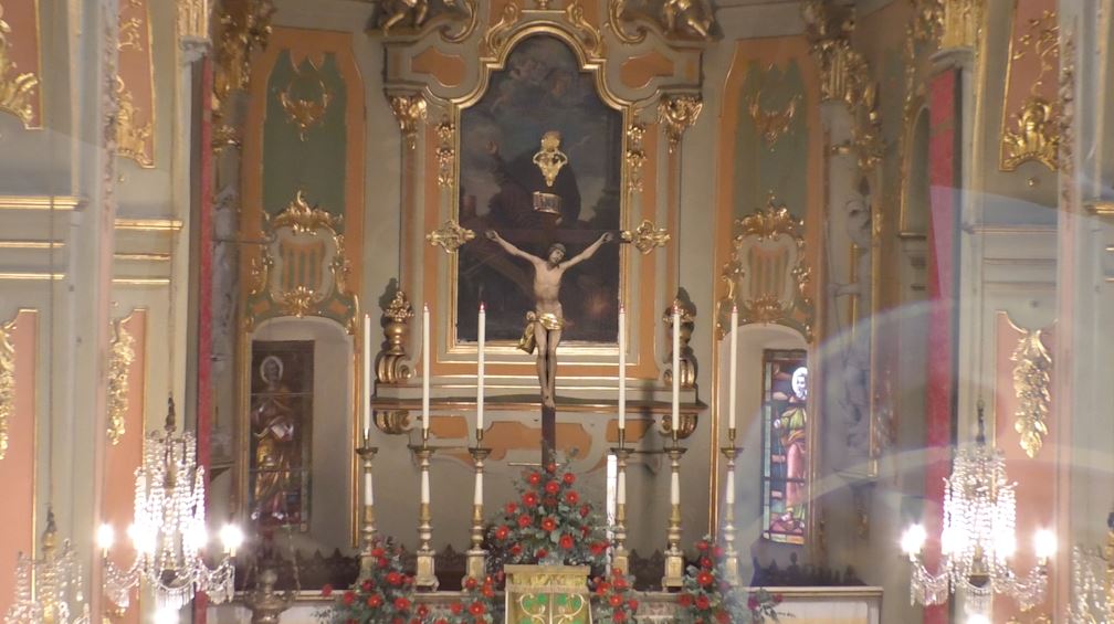 Al suo interno, riccamente ornato da stucchi in oro d’epoca barocca, custodisce importanti opere d’arte: