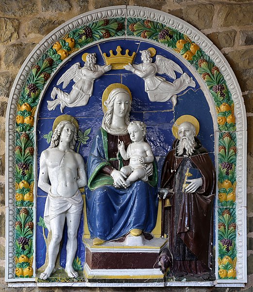 FIGLINE VALDARNO (FI). Palazzo Pretorio, terracotta di B. Buglioni con s. Antonio abate, 1515-20