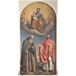 Olio su tavola di 155 x 187 cm. Raffigura la Madonna col Bambino in trono, angeli, e s. Antonio abate e san Nicola di Bari