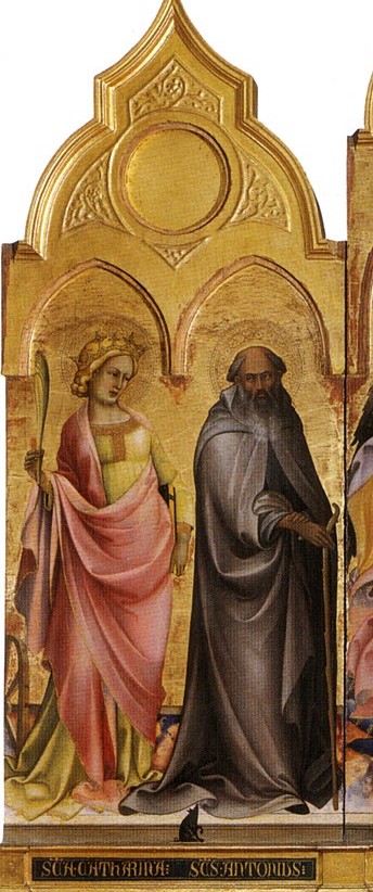 Attualmente l’opera si presenta con l’Annunciazione nella tavola centrale; il pannello laterale sinistro raffigura santa Caterina d’Alessandria e sant’Antonio abate, quest’ultimo nella consueta iconografia: saio nero, mantello marrone, bastone e un piccolo maiale ai piedi, sul gradino della base.