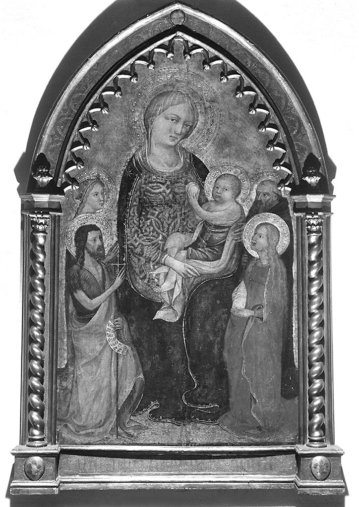 Opera di Ventura di Moro, un artista fiorentino ampiamente documentato dalle fonti (1395/1402 – 1486). Un tempo era noto come Pseudo Ambrogio di Baldese; è stato però identificato da Enzo Carli nel 1972 attraverso la lettura del nome del pittore sul manto della piccola Madonna con Bambino proveniente dal convento di Santa Maria Maddalena di Siena ed ora nella locale Pinacoteca Nazionale. Oggi però l’attribuzione di alcune opere, in passato attribuite a Ventura, è stata rivista a favore di Lippo di Andrea.