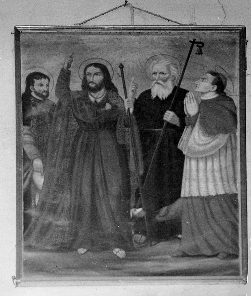 1) un dipinto a olio su tela del XIX secolo raffigura i ss. Rocco, Giacomo maggiore, Antonio abate e Carlo Borromeo. S. Antonio tiene un bastone cui è appesa una campanella. Ai piedi il maiale.