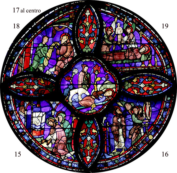 FRANCIA – CHARTRES. Cattedrale, vetrata con storie di s. Antonio abate, XIII secolo