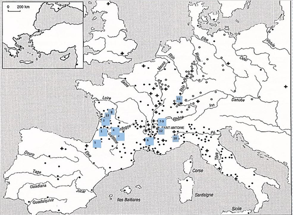 sono reperibili le schede riguardanti alcuni siti e precettorie antoniane in Francia: