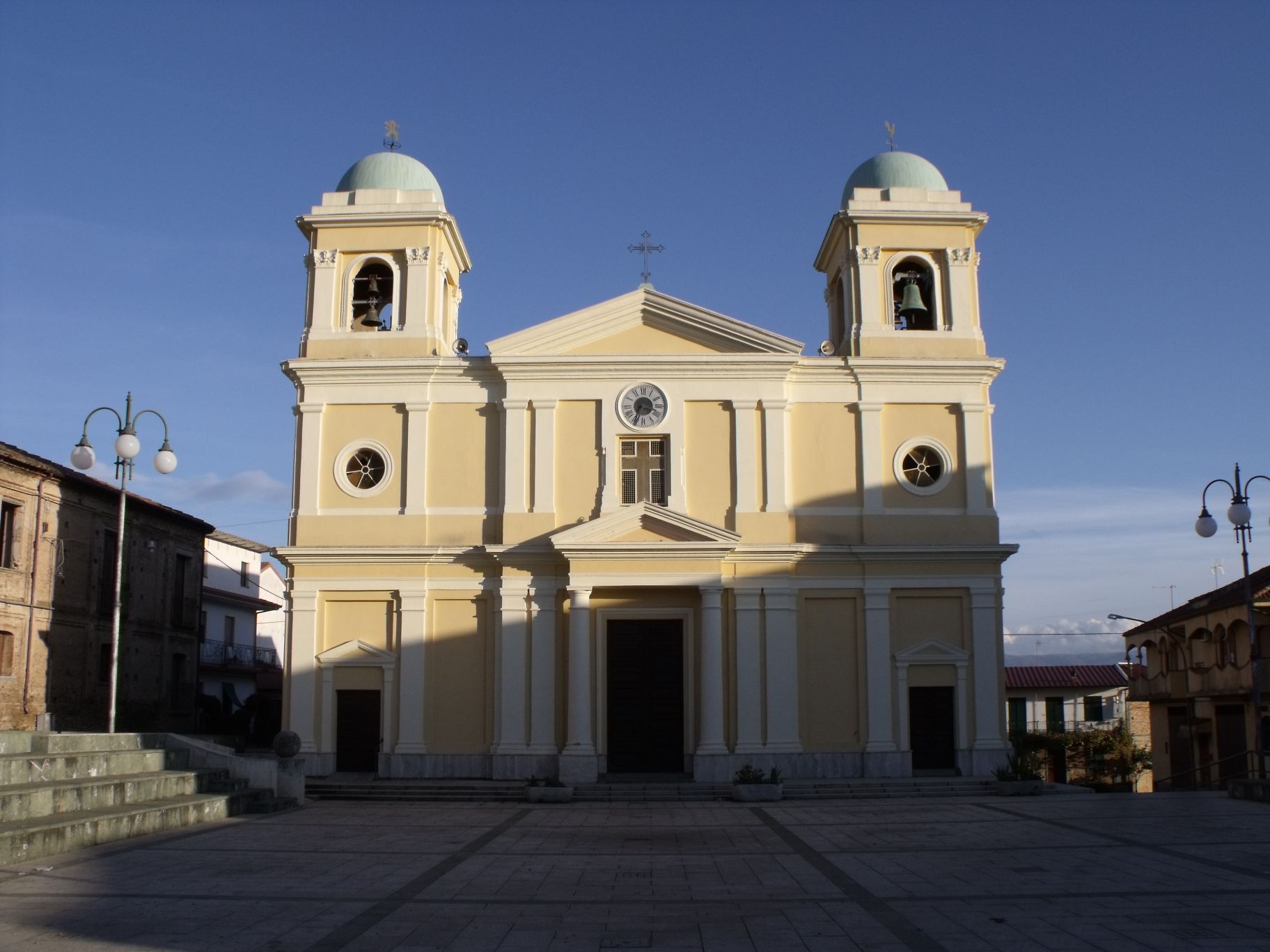 La chiesa fu edificata nel 1789, su progetto dell’architetto napoletano Sanget, realizzata a seguito del terremoto del 1738. I lavori di ricostruzione del paese, distrutto dal sisma, comportarono la fusione delle chiese di Sant’Antonio abate – dedicata al Santo patrono – e dell’Annunziata. I terremoti del 1905 e del 1908 provocarono ingenti danni alla chiesa che fu ristrutturata nel 1929. P Presenta una facciata sezionata in due ordini decorati da lesene. L’ordine inferiore presenta un portale incorniciato da due colonne con capitello che sorreggono il timpano. La facciata inoltre presenta un’ampia monofora ed un orologio. E’ affiancata da due campanili con cupola che si innalzano su tre livelli.