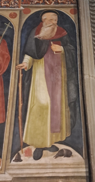 Altre opere da segnalare sono una Deposizione di scuola vasariana (XVI secolo – altare a destra dell’ingresso), un affresco con Annunciazione e Santi fra cui un sant’Antonio abate – (Anonimo del 1527 – III altare a destra), una tela di Matteo Confortini raffigurante l’Assunzione della Vergine (fine XVI secolo, significativa perché rappresenta l’unica opera firmata del pittore). Sant’Antonio è raffigurato con un bastone nella mano destar e un libro nella sinistra. A terra sono la campanella, il fuoco e, a destra un piccolissimo maiale della cinta senese.