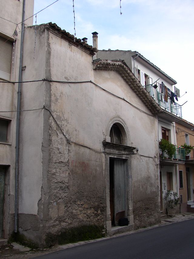 La chiesa, a navata unica rettangolare e con struttura in muratura ordinaria intonacata, presenta un fronte stretto fra altri edifici, caratterizzato da un portale squadrato, in pietra, dotato di un accenno di modanatura decorativa. Il portale è sormontato da una mensoletta aggettante con sovrastante finestra a lunetta con cornice modanata. La copertura, lignea, è a doppia falda.