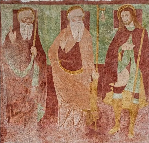 GOZZANO (NO). Oratorio di Santa Maria di Luzzara, affr. raffiguranti Sant’Antonio abate