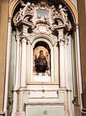 Nel settimo altare dedicato a sant’Antonio abate è posta la sua statua in terracotta verniciata a fuoco, che misura 160 x 119 x 35 cm.