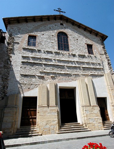 La chiesa, dalla caratteristica facciata incompiuta, era esistente nel 1063. Ampliata nel XIV secolo dai Domenicani, fu ulteriormente ingrandita nel Quattrocento con l’aggiunta del presbiterio, rinnovata ampiamente nel Cinquecento, quando andarono perse alcune cappelle laterali e buona parte degli affreschi. Ancora restaurata nel Seicento e radicalmente trasformata nel Settecento. Ricca di opere d’arte e affreschi.