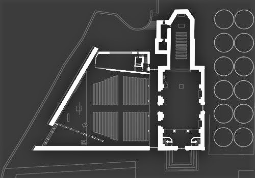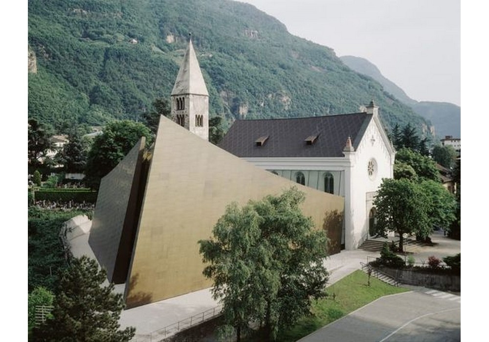 A nord della chiesa, sul fianco sinistro, gli architetti Höller & Klotzner di Merano aggiunsero un nuovo spazio a pianta trapezoidale, che accoglie l’aula liturgica principale e la sagrestia. La struttura è composta da muri inclinati e da una copertura, che raggiunge il punto più alto in corrispondenza dell’altare. Si crea così una vasta “tenda”, che sta a simbolizzare “l’accoglienza”, “la casa”, “l’amicizia” e che vuole accogliere e unire sotto di sé l’intera comunità, al di là delle differenze linguistiche.
